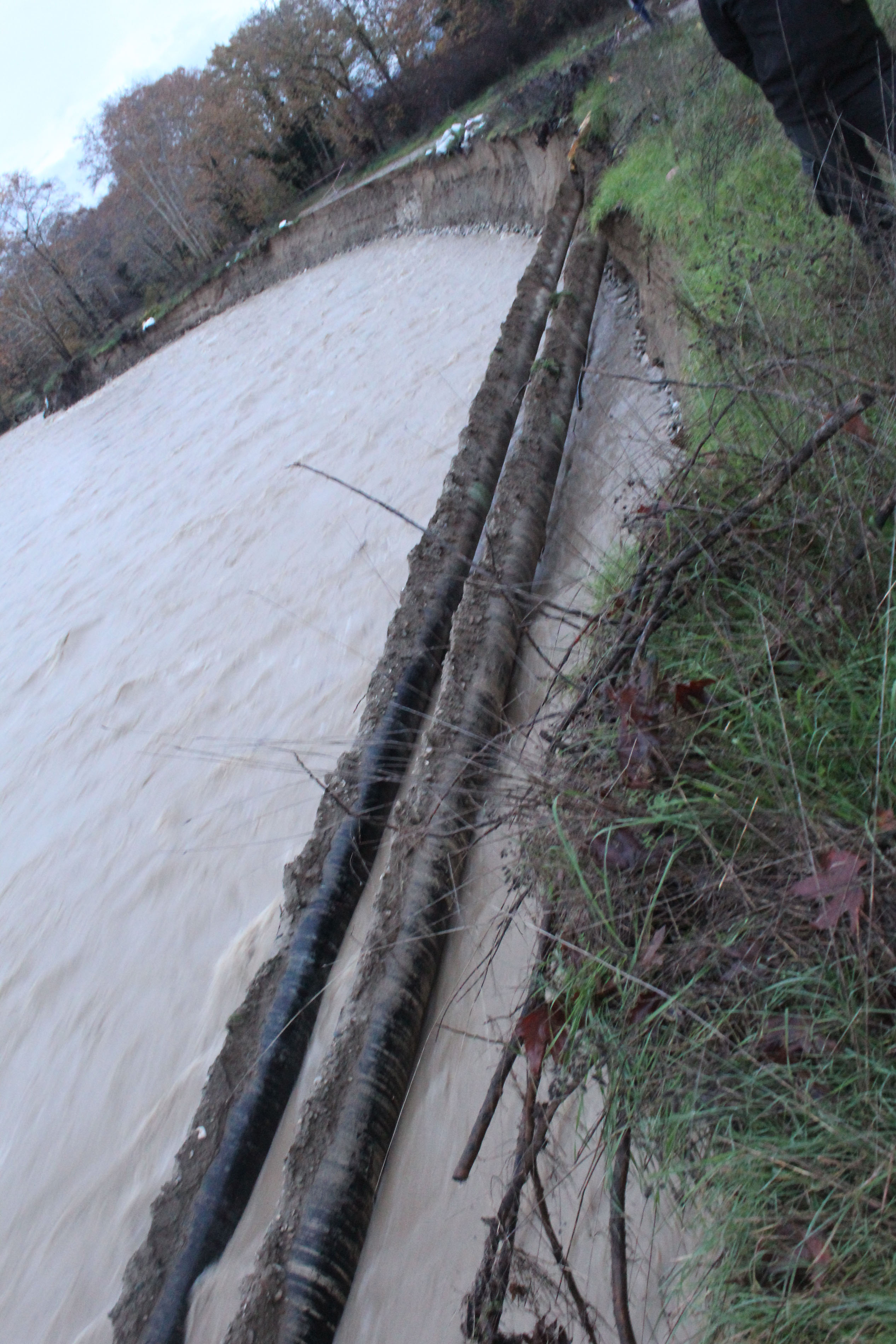 Η υποχώρηση των πρανών αποκάλυψε τμήμα του κεντρικού αγωγού μεταφοράς νερού που υδρεύει την πόλη της Κατερίνης